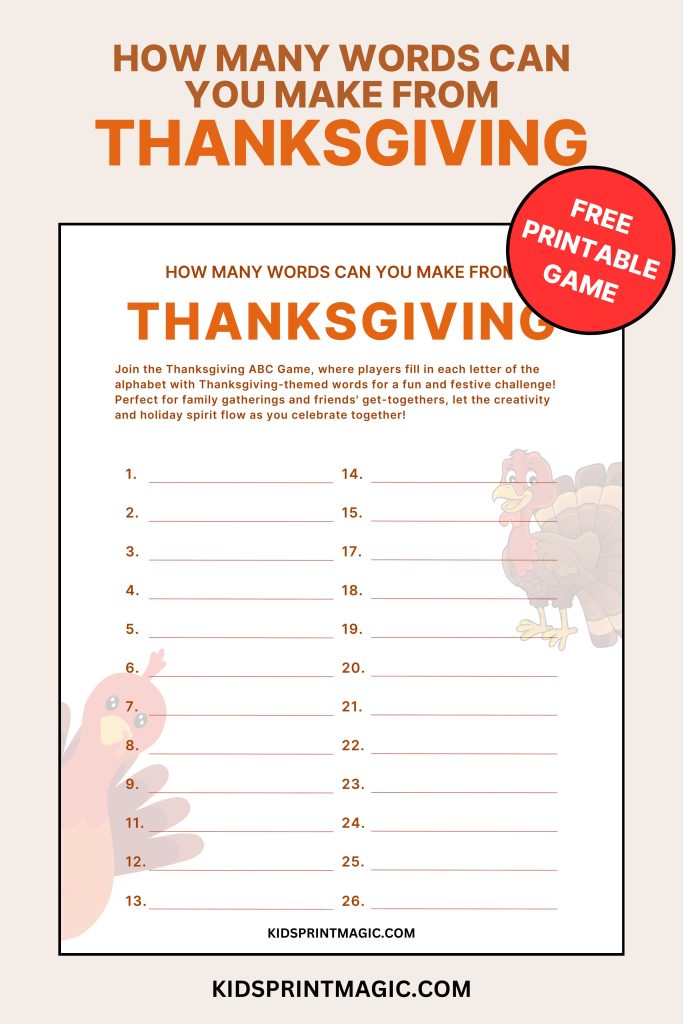 2. Explain the Game Objective: The goal of the game is to think of Thanksgiving-themed words that start with each letter of the alphabet, from A to Z. Players will write down a word for each letter that relates to Thanksgiving or fall.