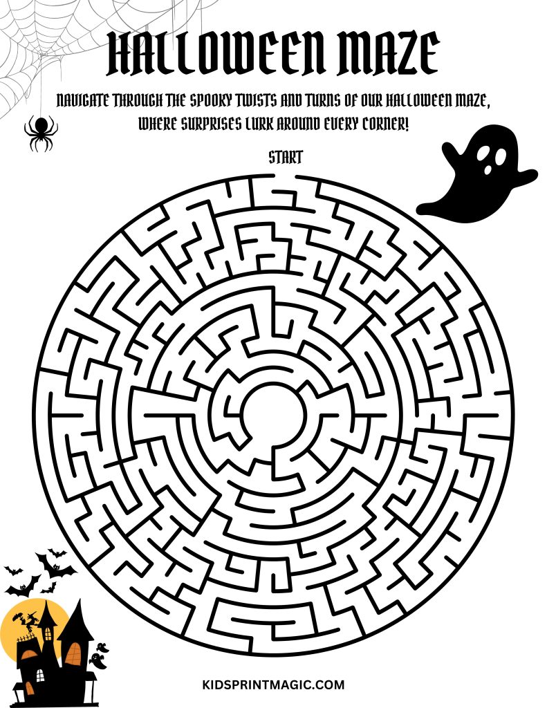 Are you ready for a spooktacular journey? This printable Halloween maze is packed with twists, turns, and all things spooky! As you make your way through the haunted paths, you’ll encounter creepy creatures, hidden treats, and fun surprises. Your mission is to find the way out before the ghosts catch up! Grab a pencil or crayon, get comfortable, and let the Halloween fun begin. Can you conquer the maze and emerge victorious? Happy haunting! 🎃👻