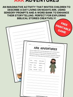 Step aboard the ark with Ark Adventures, an imaginative and educational activity that lets kids explore what life might have been like on Noah’s ark. Describe the sights, sounds, and daily tasks of caring for animals during the flood, using the provided word bank for inspiration. Perfect for classrooms, Sunday schools, or at-home learning, this …