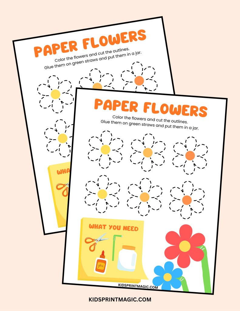 - Print the Flower Page: Print the Paper Flowers page, which features outlined flower shapes ready for customization.